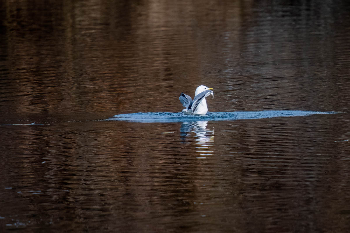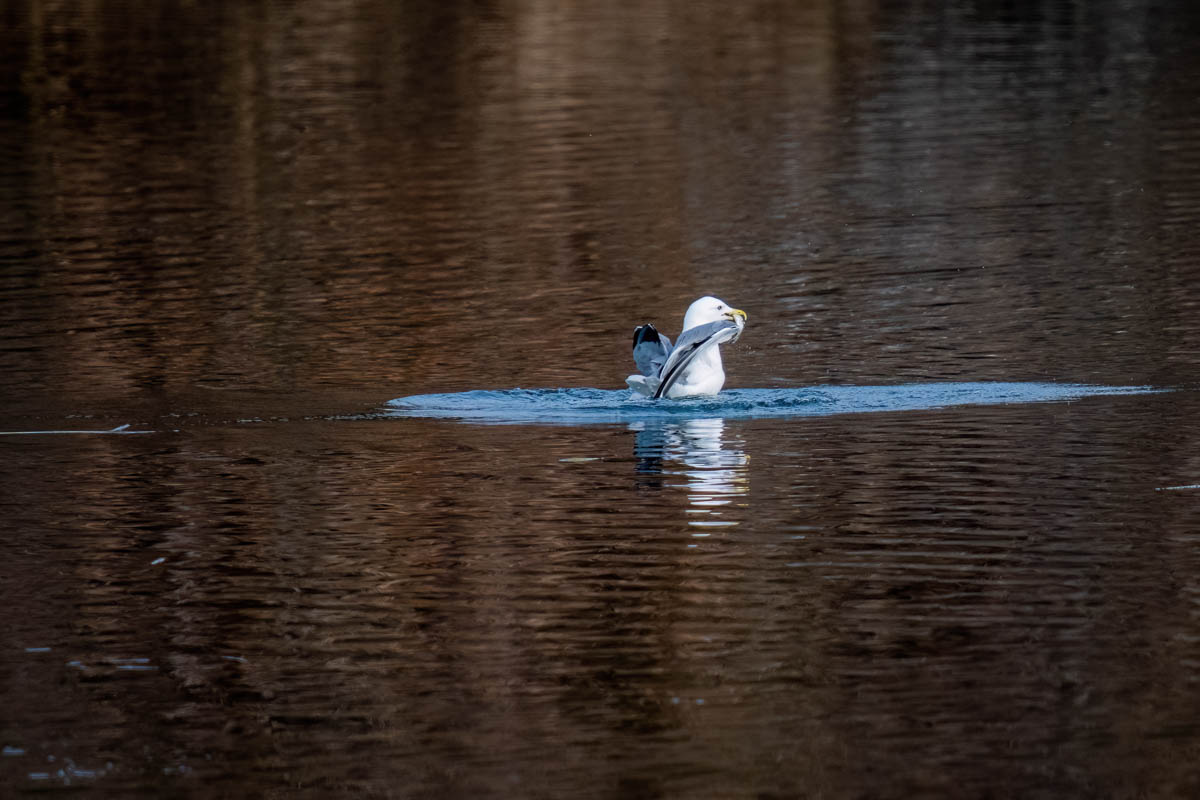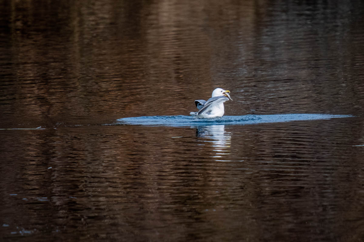 Als ich vorgestern mit meiner Frau am Weidachsee bei Blaichach im Oberallgäu spazieren ging, fiel mir eine Mittelmeermöwe auf, die in der Mitte des Gewässers schwamm. Sie flog plötzlich auf, drehte eine Runde und landete wieder.